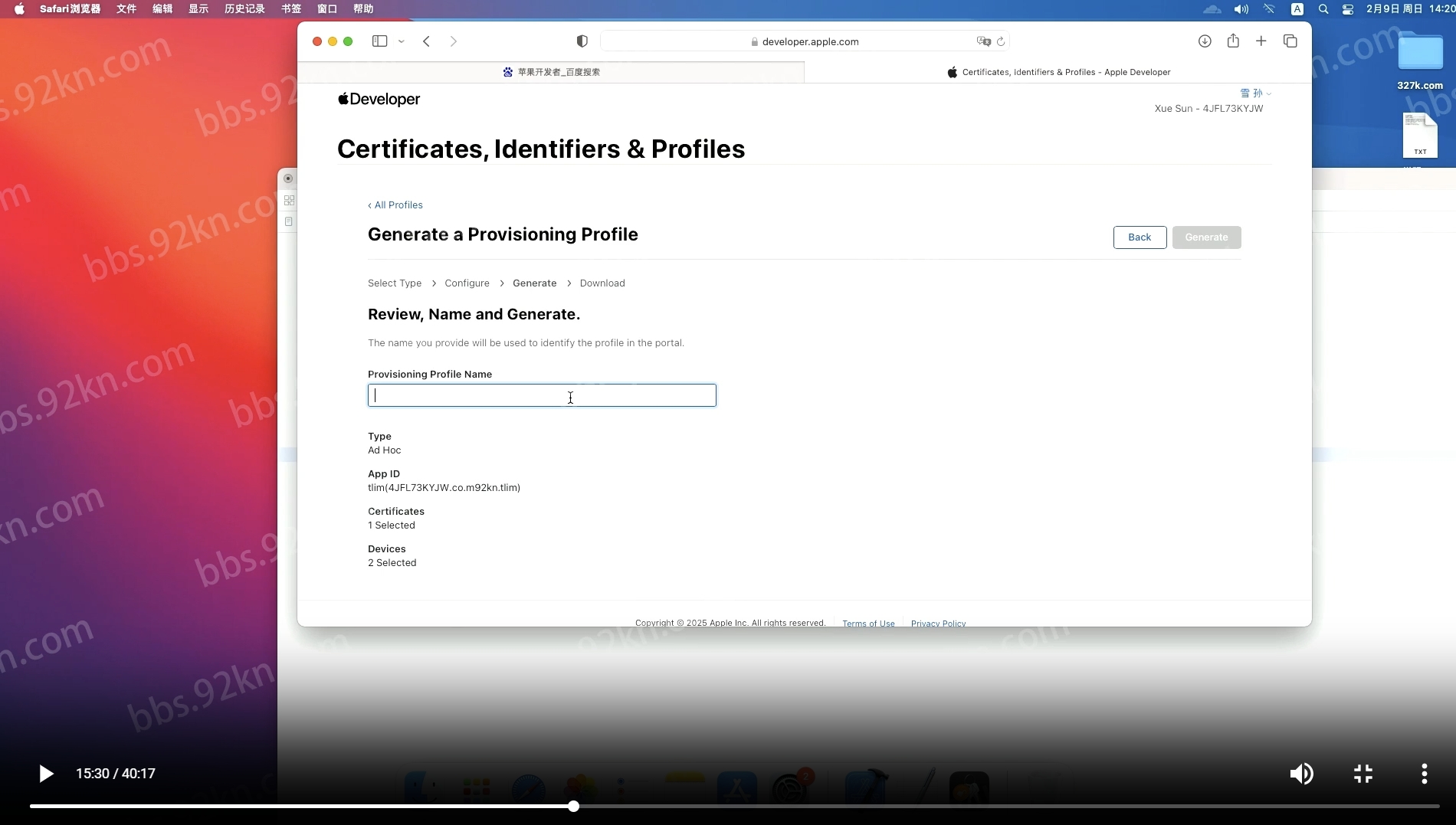 好啦,今天我们来配置谭聊的苹果证书,首先 在百度中 搜索   苹果开发者,因为之前我登录了,所以直接登录了。我们先来创建证书    点击创建 然后继续  这里需要上传一个文件   我们在本地电脑中找到钥匙串   打开钥匙串后, 我们需要创建一个证书  选择证书助手  然后选择第5个,从证书颁发机构请求证书,请求这里,选择存储到本地  这时就是我们需要上传的证书  选择创建的证书后 点击继续  就可以创建证书了,我之前已经创建了,这里就不重复创建了。然后我们回到证书页面,选择创建发布的证书  看操作  这里同样选择刚创建的本地证书  然后点击继续就创建成功了,创建成功后  回到证书页面 下载证书,证书下载好后,需要安装,  我们再次打开钥匙串窗口  我这里已经安装了,正常没安装证书的话,这里是空的。证书的安装非常简单,  我们先找到下载的证书  分别双击两个证书就可以了,这样就安装了,安装好的证书会出现在钥匙串窗口中。接下来,我们来创建标识  回到苹果开发者页面  这里的描述和  id 根据自己的实际情况来  描述名称是为了区分 以方便后面查找  ID是你域名的反向。写好描述和  ID后  选择相应的功能   然后创建就可以,接下来 我们来添加用户 这里需要填写名字和用户苹果手机的uuid,填写好后,就创建完成了。接下来我们来创建描述文件  正常一个应用需要三个描述文件  看我操作   三个描述文件就创建好了,记得每次都要选择上面创建标识时的描述和ID,到这里,苹果应用需要的证书文件就都弄好了,下面我们来对软件进行证书配置。首先打开软件  找到需要编译的源码,打开源码后,找到需要填写证书的地方  主要上面的自动创建我们取消掉。我们已经创建完成了,如果你没有创建,最好不要用,因为可能会出现无法预知的问题,我们先给我们下载的证书找个地方,方便后面找到和使用   放好文件后  我们来软件上填写配置  写完  id  选择好描述文件后,出现了两个提示,这种情况非常正常,这说明  我们在创建标识的时候,少选择了一些功能  。我们看提示已经告诉我们了。  我们需要把这个添加进去  功能加进去后,我们回到,软件上看下  还是没变化,这时我们需要重新配置一下描述文件  重新导入刚下载的文件,提示消失了。这时候,我们的证书就已经配置完成了。接下来。我们改下名字  改好名字后,我们来编译  编译之前需要把苹果手机链接上 然后选择手机  开始编译,记得, 编译之前, 先要真机调试启动一下, 以免有问题。编译之前 ,先打开 redme 看一下, 咱们先做基本配置 , 改一下网址即可。好了, 真机调试启动。OK 了, 真机已经启动起来了 下面是运行日志输出。接下来,  出  IPA  包。这里需要一些时间, 稍等2分钟  选择第二个  这步需要选择一个描述文件  好到这里就编译完成了 。